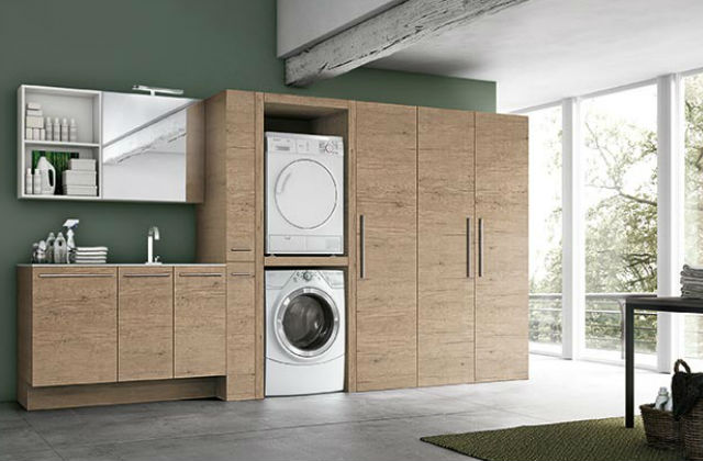 Seja qual for a forma do seu banheiro, não se esqueça, economize espaço, mas faça com gosto e estilo. Decore seu ambiente duplo de forma uniforme, garantindo elegância. Na foto acima, você pode ver um banheiro completamente em madeira, cujo a decoração da lavanderia é bem combinada com o resto dos móveis.