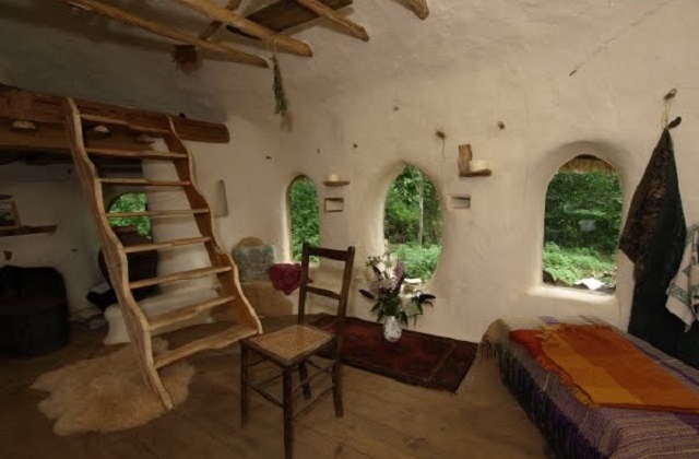 As janelas foram feitas usando velhos pára brisas, reaproveitados de carros abandonados. E para aquecer no inverno colocou uma estufa a lenha. Para a água, o Sr. Buck usa uma fonte natural da região.