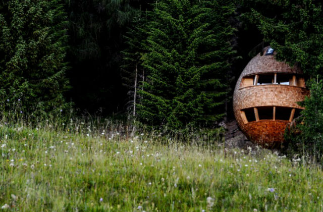 O primeiro andar das casas cones de pinho, localizado a 2,5 metros acima do solo, nos dá uma visão panorâmica de 360° dos belos Alpes. Subindo em altitude, encontraremos o segundo andar, equipado com cozinha, banheiro, cozinha e sala de estar para manter contato com a natureza enquanto permanece dentro da casa, graças a uma janela e varanda (como ressaltam os próprios arquitetos).