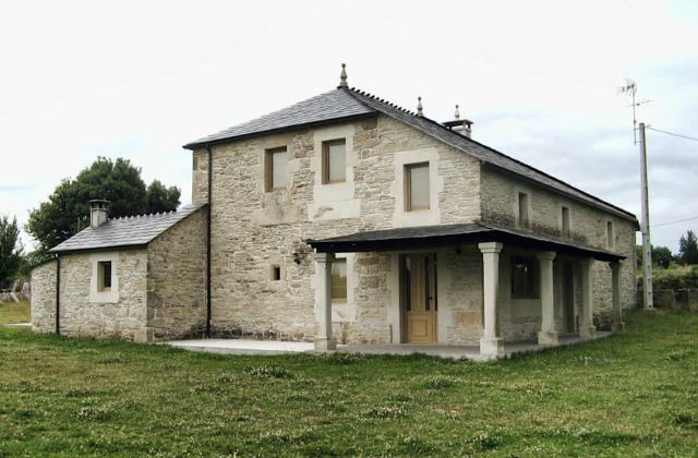 A fachada posterior é talvez aquela que sofreu a mudança mais relevante. Excluindo o jardim, que foi completamente renovado, aparece um novo elemento na propriedade. Um pórtico de canto que permite a entrada coberta de possíveis chuvas na casa. Tudo foi possível por uma porta adicional, não presente anteriormente.