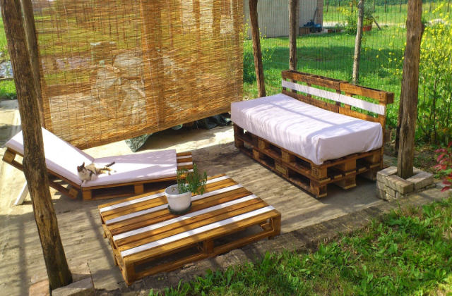 O pequeno canto pode ser equipado com pequenos armários para guardar suas leituras de verão ou mesas baixas para apoiar revistas de fofocas ou palavras cruzadas. Se você é um amante do faça você mesmo, servira alguns paletes para fazer móveis de jardim práticos e bonitos, será como uma brincadeira.