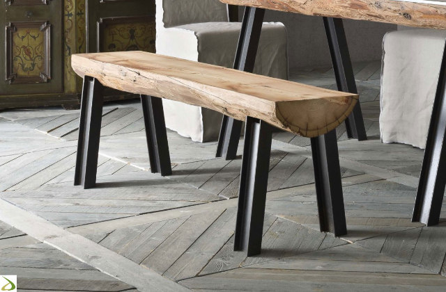 Para fazer um banco com uma estrutura simples, é suficiente dois troncos, um de 50 cm de comprimento e outro 30 cm de diâmetro. Eles podem ser fixados no chão a uma distância de cerca de 1,50 m. Eles serão os “pés” do banco. Para o chão no qual se sentar, no entanto, o tronco deve ter cerca de 1,80 m de comprimento, cortar longitudinalmente pela metade e preso com unhas nos dois primeiros troncos. Se você gosta, poderá colocar sobre almofadas coloridas.