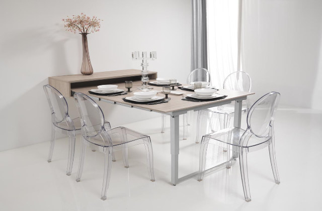 A área onde você serve as refeições pode ser ampliada com mesas que se estendem, no qual simplesmente você precise adicionar cadeiras quando for servir. Opte por aquelas dobráveis para que sejam armazenadas no armário ou varanda e convide tantos amigos quanto você quiser.